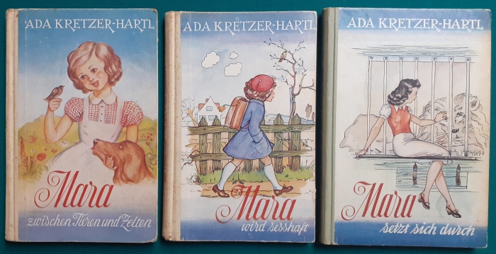 Ada Kretzer-Hartl (geb. am 21. November 1897 in München; gest. am 5. Mai 1963 in Braunschweig) war eine deutsche Kinder- und Jugendbuchautorin. Ada Kretzer-Hartl wurde als Ada Hartl geboren. Unter dem Pseudonym Ada Kretzer-Hartl schrieb sie zahlreiche Kinder- und Jugendbücher, darunter die Mara- und die Gabi-Reihe, die in der Zeit um 1950 populär war, aber schon in der Vorkriegszeit begonnen wurde. Damals erschienen die Bände im Hans-Jörg-Fischer-Verlag, dem späteren Boje-Verlag, und wurden von Lotte Oldenburg-Wittig und R. Pfennigwerth illustriert. Die ersten Bände der Gabi-Reihe aus der Nachkriegszeit waren mit Illustrationen von Barbara Beyreiß versehen und kamen bei Westermann heraus. Die Gedichte Der Hirte, Und hab mich lieb und Der Haselstrauch wurden 1942 vom Braunschweiger Komponisten Hanns Löhr vertont. Infos aus wikipedia, Stand 31.1.2015 |
