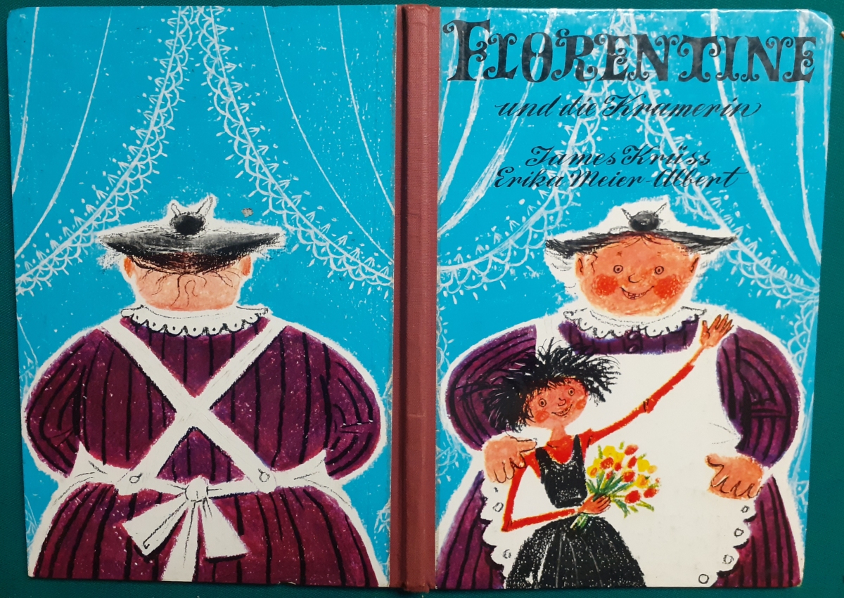 James Krüss: Florentine und die Kramerin Buchgemeinschaft Donauland, Wien, Ausgabe um 1967, ca. 50 Seiten - nicht paginiert, Leinenrücken mit festem lackierten Hartpappeinband, Format 26 x18 cm, Bilder von Erika Meier-Albert; an den Buchkanten bestoßen; insgesamt ist das Buch in altersgemäßem guten Zustand, Preis: 7 EUR Hier zur Illustratoren-Galerie mit typischen Arbeiten von Erika Meier-Albert |