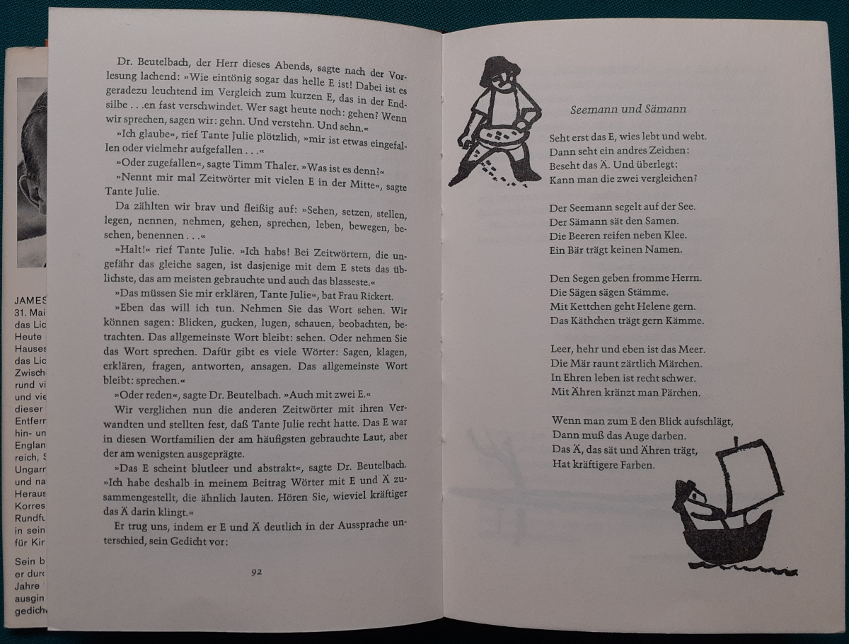 Verse von Wer rief denn bloß die Feuerwehr? Alte originale Erstausgabe von 1971, Boje Verlag, Stuttgart; ca. 30 Seiten - nicht paginiert, wunderschöne Bilder von Erika Meier-Albert; etwas an den Buchkanten bestoßen; Rücken etwas beschädigt; sonst recht guter altersgemäßer Zustand, Preis: 9 EUR Hier zur Illustratoren-Galerie mit typischen Arbeiten von Erika Meier-Albert |