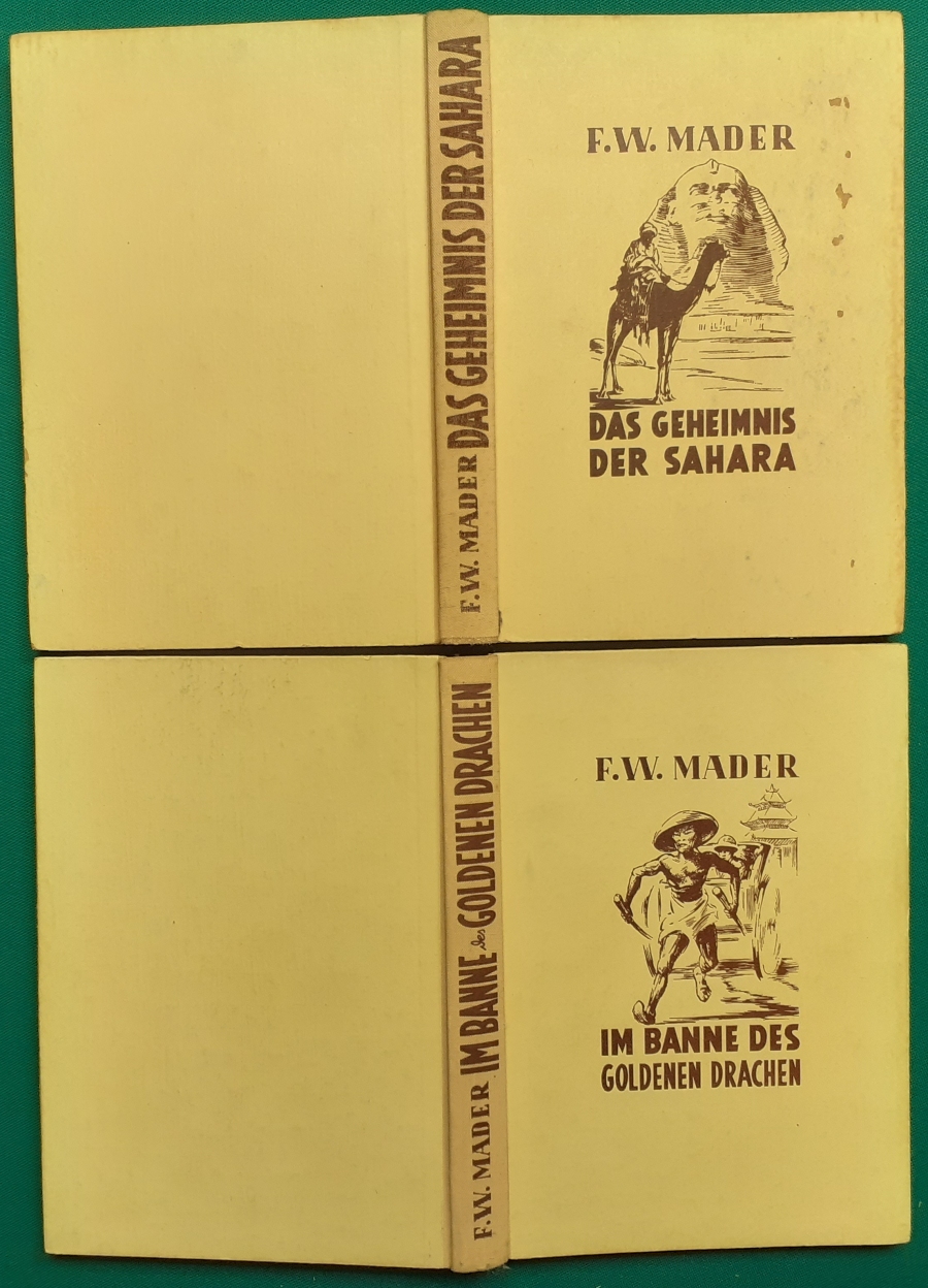 Friedrich Wilhelm Mader wuchs im evangelischen Pfarrhaus der deutschsprachigen Gemeinde in Nizza auf, deren langjähriger Leiter sein Vater Philipp Friedrich Mader war. Mader studierte evangelische Theologie in Tübingen und trat 1889 in den württembergischen Kirchendienst. Er war von 1890 bis 1917894 zunächst Vikar und dann Pfarrer an verschiedenen Orten. In den Jahren im Hohenlohischen begann er, Jugendbücher zu veröffentlichen (bis 1942), die vor allem in anderen Kontinenten spielen. Mader war nebenbei für verschiedene Zeitungen, u. a. für die Münchner Fliegenden Blätter, tätig. Seine eigentliche Berufung war die Schriftstellerei. Ab 1917 war er als freier Schriftsteller tätig. Mader war von christlich-evangelischen Lebensvorstellungen und Moral durchdrungen und deutschnational eingestellt. Seine Afrikaromane machten ihn zu einem besonders bild- und wortreichen Vertreter der Kolonialliteratur der Weimarer Republik und wurden zum Teil bis in die NS-Zeit verlegt. 1929 baute er in Stuttgart ein eigenes Haus. Im Kreisarchiv des Hohenlohekreises wird ein Teil des Nachlasses von Friedrich Wilhelm Mader aufbewahrt. Zu seinen Kindern zählt der Maler Fritz Mader. Informationen aus wikipedia, Stand: 20.1.2020 |