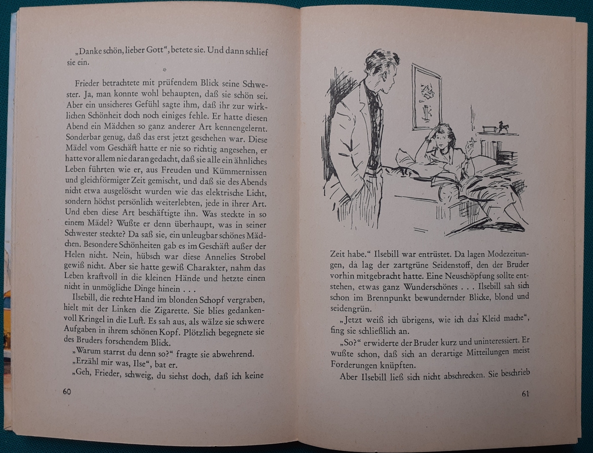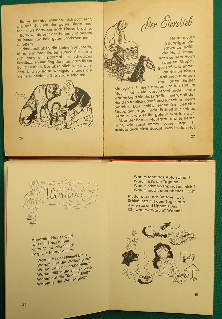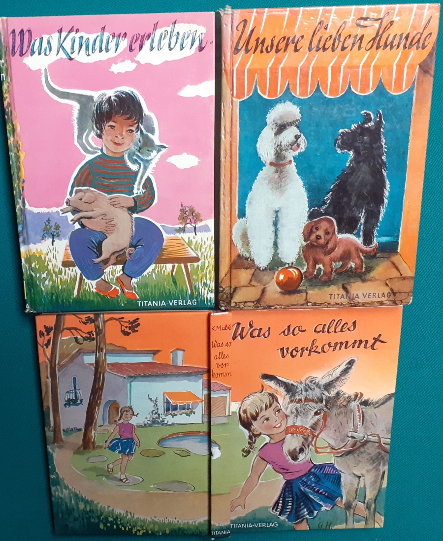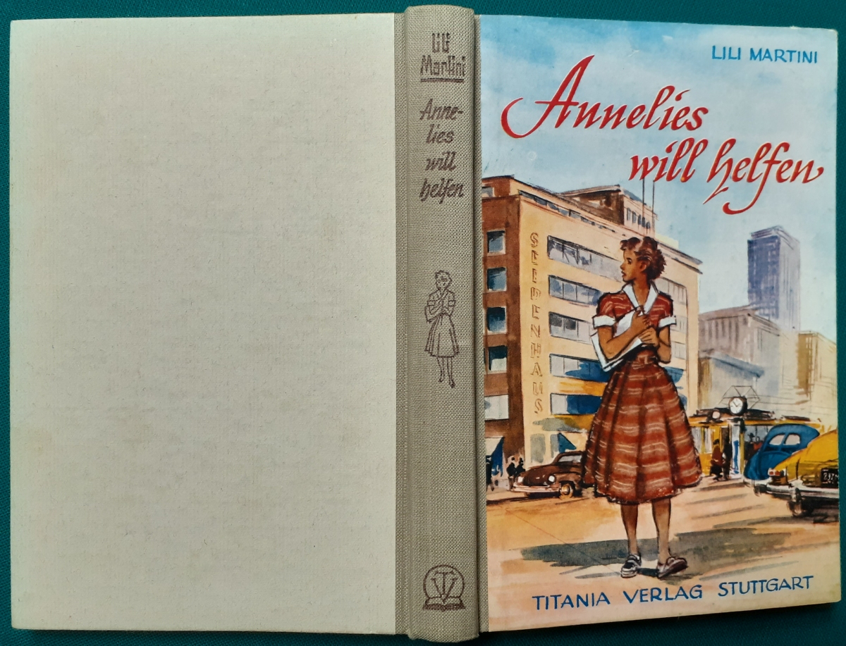 Eine weitere alte Ausgabe von Annelies will helfen Illustrationen von Walter Rieck, Titania Verlag Stuttgart, Erstausgabe von 1953, 160 Seiten, Leinenrücken mit lackiertem festen Hartpappeinband; vorn innen handschriftliche Widmung von 1953; insgesamt sehr guter altersgemäßer Zustand, wenig Benutzerspuren Preis: 7 EUR Hier zur Illustratoren-Galerie mit typischen Arbeiten von Walter Rieck ... |