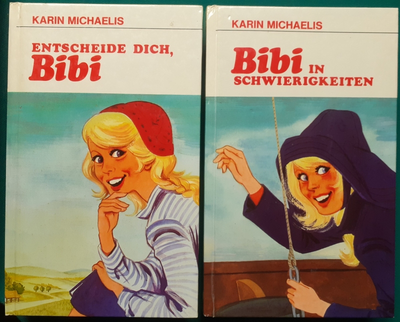 von Lizenzausgaben im Verlag Jugend heute, Wien; Ausgaben um 1975, Reihe in rundum lackiertem festen Hardcover Einband; Einbandillustration jeweils von Anny Hoffmann: Entscheide dich, Bibi Bibi in Schwierigkeiten Hier zur Illustratoren-Galerie mit typischen Arbeiten von Anny Hoffmann |
