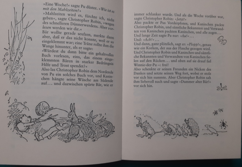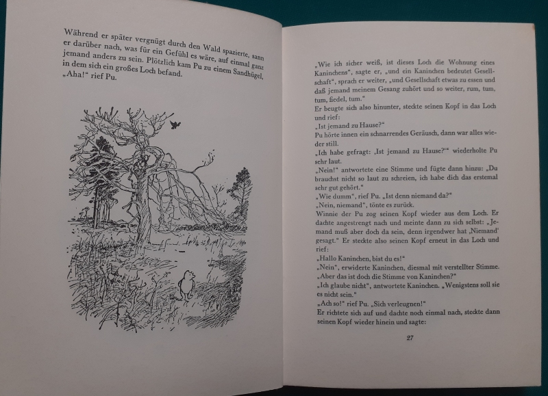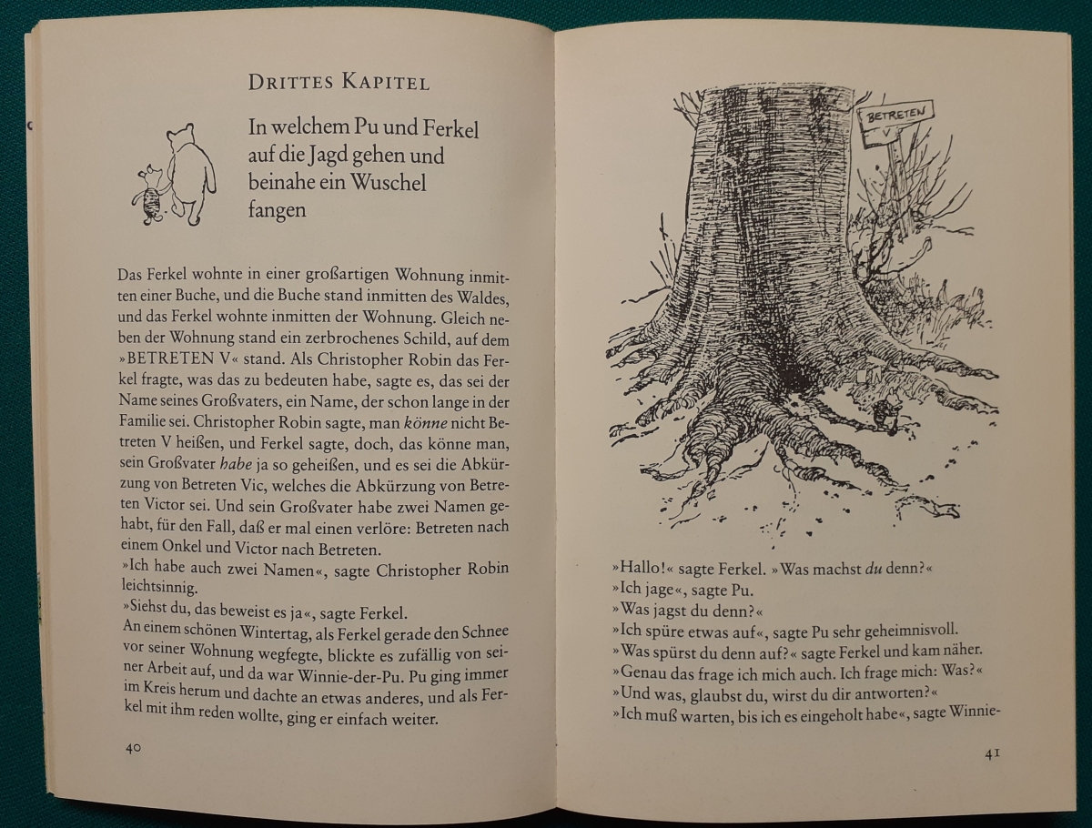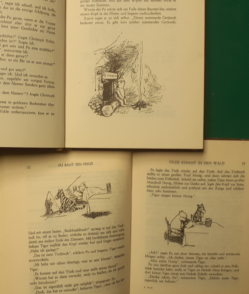 Bücherbund: Ausgabe um 1970; mit 117 Original-Illustrationen von E. H. Shepard; 150 Seiten, Leinenrücken mit festem Hartpappeinband, leicht an den Buchkanten bestoßen; altersgemäßer sehr guter Zustand, Preis: 8 EUR |