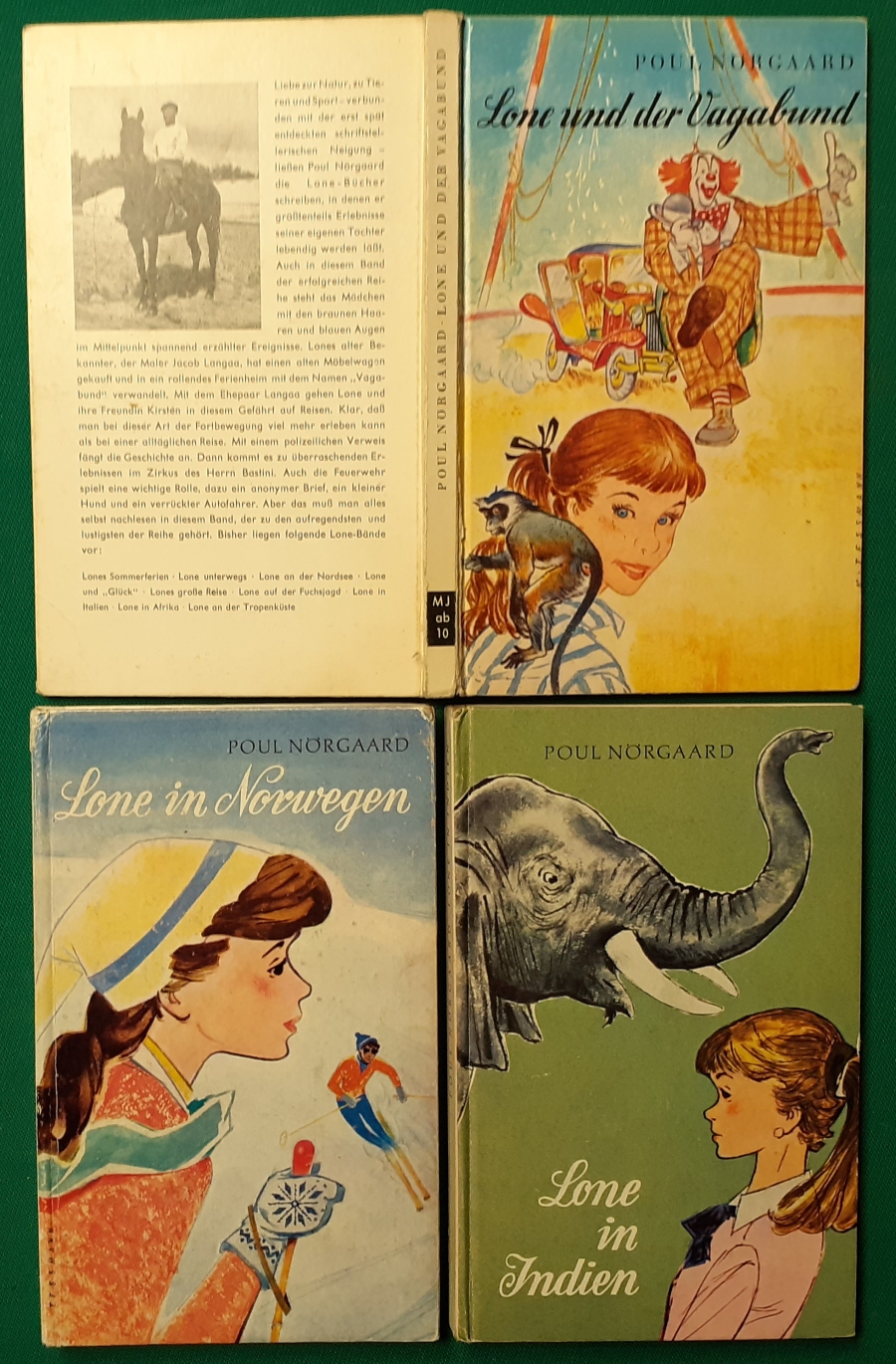 Später erst begann er Bücher zu schreiben und hatte vor allem mit den Lone-Bände in Skandinavien außerordentlichen Erfolg. Das Vorbild für Lone war Poul Nörgaards eigene Tochter. |