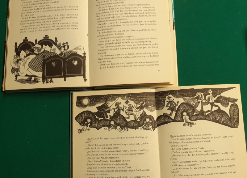 Gina Ruck-Pauquèt: Niko mit den vielen Namen Ueberreuter Verlag, Wien u.a., Erstausgabe von 1971, Illustrationen von Dietrich Lange, 96 Seiten; sehr fester Hardcover Einband, leicht an den Buchkanten bestoßen; insgesamt ist das Buch in sehr gutem altersgemäßen Zustand; Preis: 6 EUR |