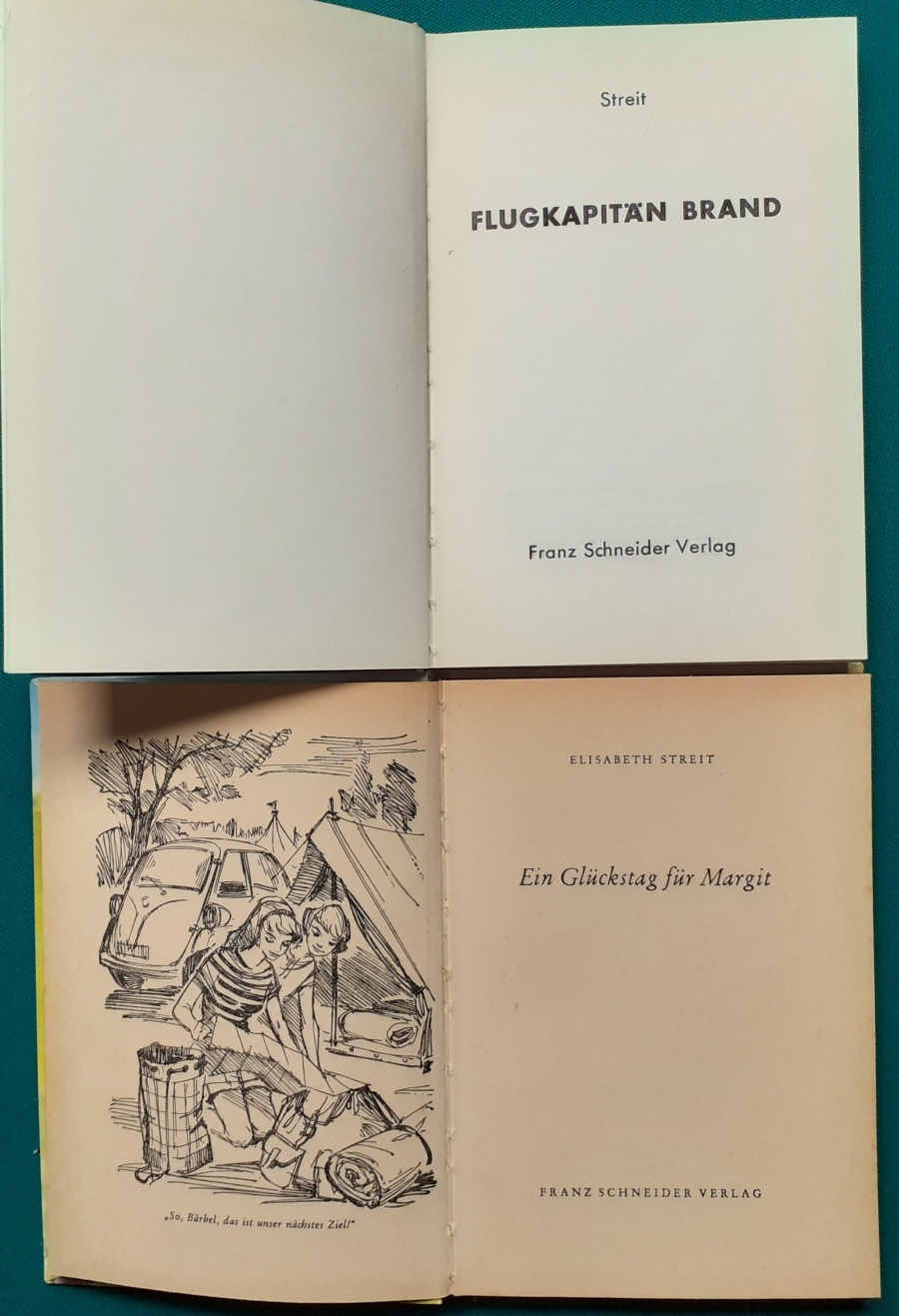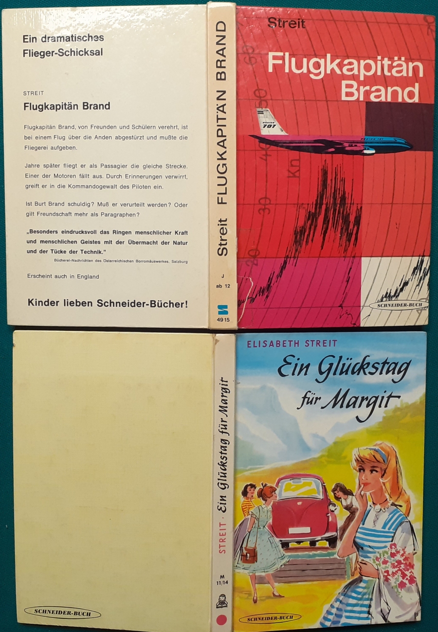 Kurt W. Streit wurde am 28. Juni 1921 in Bayreuth geboren. Er lebte in Lenggries (bei Bad Tölz in Bayern) und arbeitete als Luftfahrtpublizist und Jugendschriftsteller. Als Jugendschriftsteller benutzte er vor allem die Pseudonyme George C. Aileron (meist für seine abenteuerlichen Geschichten) und Elisabeth Streit bzw. E. Streit (für seine Erzählungen, die sich mehr an junge Mädchen wenden, z. B. Renate wird Stewardess, München 1955). K. W. Streit hat seine Erzählungen offenbar gut vermarktet, so tauchen immer wieder ähnliche Titel auf, von denen man erst nach Augenschein entscheiden kann, ob es sich nur um ähnliche Themen handelt oder ob es sich um Neuauflagen unter verändertem Titel handelt: So z. B. Achtung - Notlandung!; München 1953 und Notlandung!; Stuttgart 1957 oder YZ antwortet nicht; Göttingen 1955 und RX-9 antwortet nicht; Göttingen 1965. Auch solche, allerdings übliche, Mystifikationen wie E. Streit: Comet ruft Rom. Nach einer Erzählung von George C. Aileron [!]; München 1961 tauchen auf. Außerdem gab Kurt W. Streit einige Bücher zur Geschichte der Luftfahrt heraus, wie z. B. Geschichte der Luftfahrt; Künzelsau 1975 und Flieger erobern die Welt ; Stuttgart 1958. Interessant ist sicher auch die 1949 von ihm und Heinz Hermann Kölle herausgegebene Zeitschrift Die Weltluftfahrt mit dem Untertitel Weltluftverkehr, Weltluftsport, Weltlufttechnik, Weltraumfahrt, die bis ca. 1956 erschien. Biografische Daten von Klaus Bernstein; aus fictionfantasy.de; Stand: 30.01.2017 |