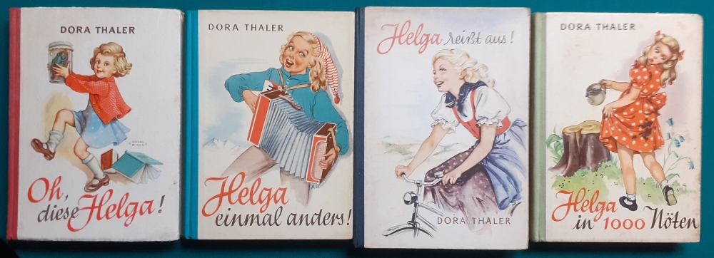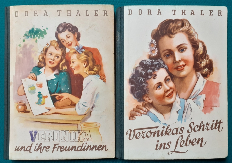 Am 28. Juni 1932 heiratete die damals 18-Jährige in Wien den mehr als dreimal so alten Schauspieler, Regisseur und Schriftsteller Kurt von Lessen eigentlich Siegfried von Lützow (1877–1960). Die Ehe wurde am 20. Juni 1949, also fast auf den Tag genau 17 Jahre nach der Schließung, geschieden. Knapp zwei Monate spätere heiratete sie zum zweiten Mal und trug fortan den Familiennamen Dolezal. Ihre ersten beiden Romane entstanden 1947: Eine Frau geht ihren Weg. Roman einer Wienerin. und Trudes Sorgenkind. Ein Jungmädchenbuch. Zunächst arbeitete Thaler mit dem Wiener Breitschopf Verlag zusammen. Ihre Trude-Reihe wurde ab 1952 mit dem Buch Achtung Trude, Aufnahme! Eine Erzählung für junge Mädchen. fortgesetzt. Dieses erschien, im Ueberreuter-Verlag und diesmal nicht nur in Wien, sondern auch über den Verlagsstandort in Heidelberg. In den nachfolgenden Jahren wurde es weitgehend ruhig um Thaler, die erst wieder ab 1956 neue Bücher herausbrachte. So erschienen im Jahr 1956 die beiden Inge-Bücher Suchkind Inge findet heim. Erzählung für junge Mädchen. (über den Bären-Verlag, Düsseldorf) und Inge findet heim. (wieder über Breitschopf; 2. Auflage: 1963). Nachdem sie sich weitestgehend ins Privatleben zurückgezogen hatte – mittlerweile lebte sie in dritter Ehe und mit dem Familiennamen Finaly - erschienen in den folgenden Jahren nur mehr selten neue Bücher. Zu den Illustratoren, mit denen sie zusammenarbeitete, zählten Willy Mayrl, Walter Rieck, Anny Hoffmann u.v.a. Am 24. September 1970 starb sie 56-jährig in ihrer Geburts- und Heimatstadt und wurde am 5. Oktober 1970 am Döbliner Friedhof (Gruppe 27, Reihe 3, Nummer 21) begraben. Informationen aus wikipedia, Stand: 5.3.2023 |