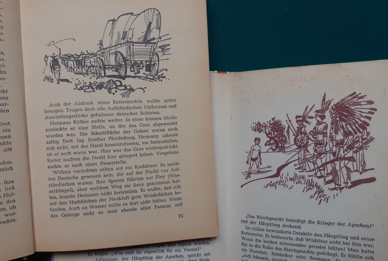 Hans W. Ulrich: In Australien verschollen Illustrationen von Klaus Gelbhaar, Loewes Verlag Stuttgart; Erstausgabe von 1964, 160 Seiten, Leinenrücken mit sehr festem Hartpappeinband, leicht an den Buchkanten bestoßen; Buch in gutem altersgemäßer Zustand Preis 7 EUR Hier zur Illustratoren-Galerie mit typischen Arbeiten von Klaus Gelbhaar |