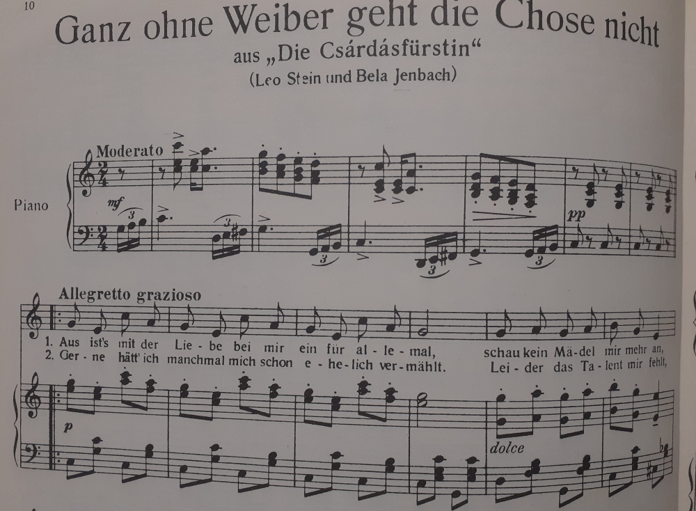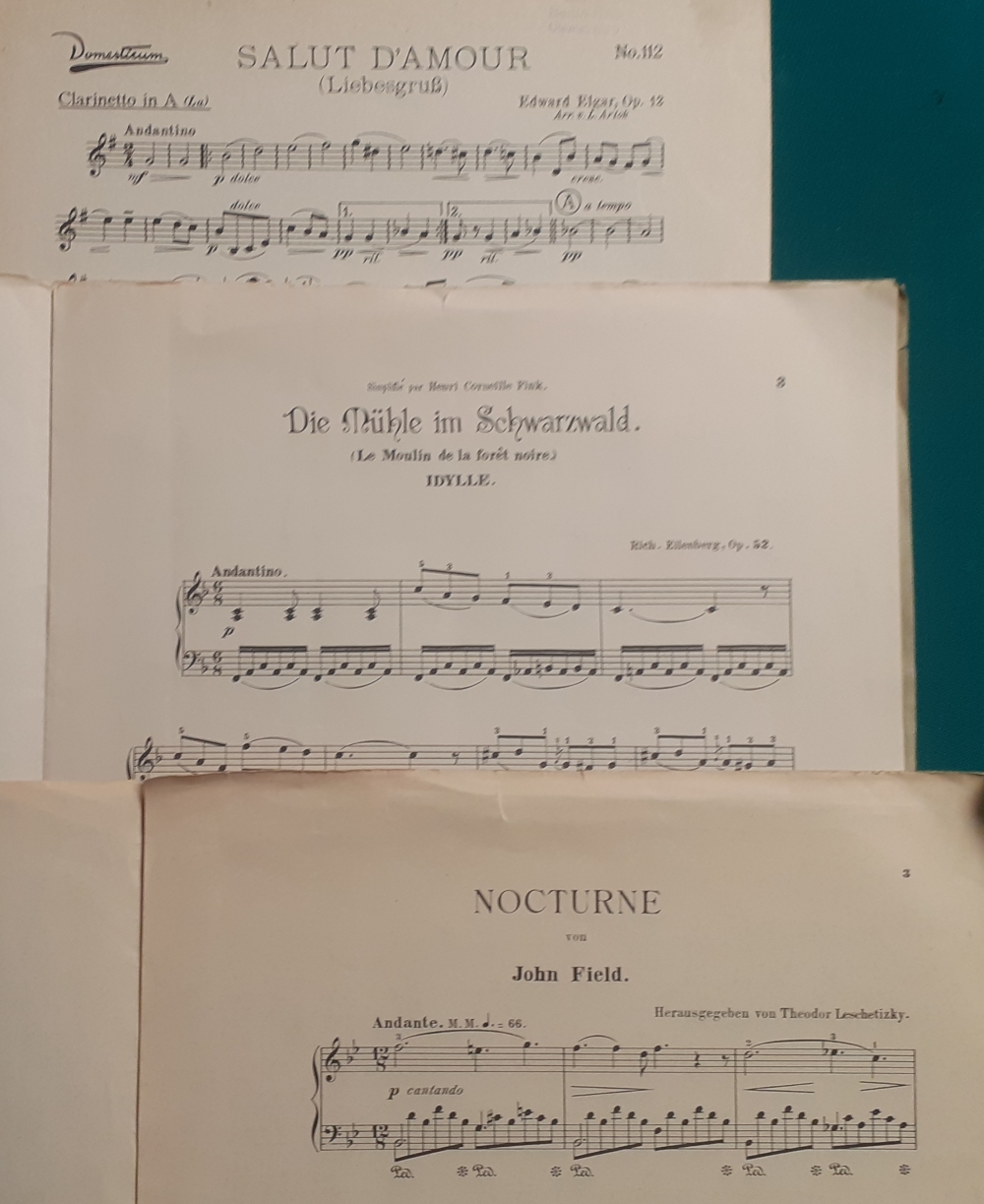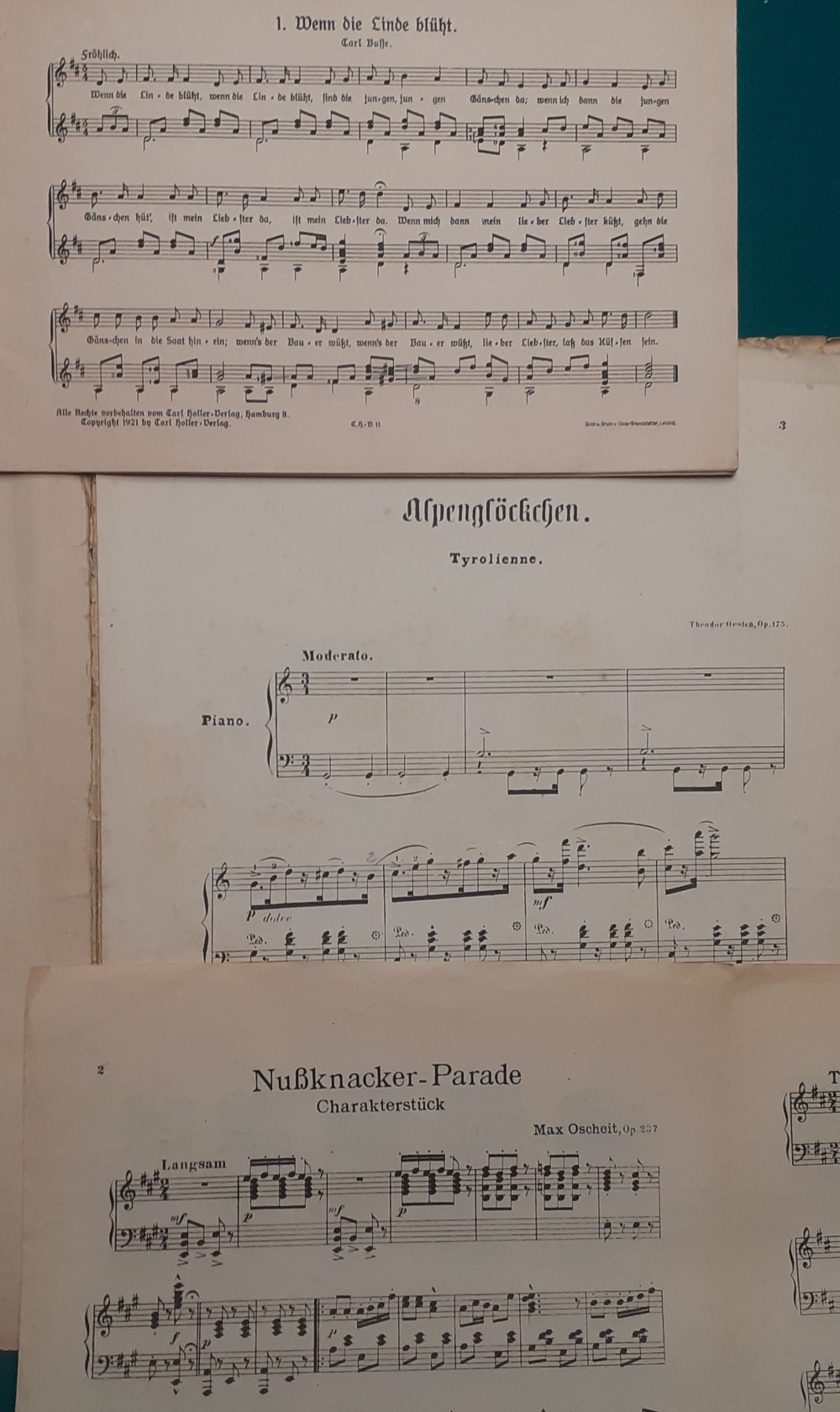 Ausgabe um 1910, Mappe mit 3 Notenseiten,