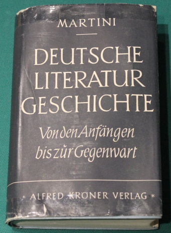 Literaturgeschichte Alfred Krönder Verlag, Stuttgart; von Fritz Martini; Ausgabe um 1960, 630 Seiten; Voll Glattleinen Einband mit Schutzumschlag; Papier-Schutzumschlag beschädigt; sonst sehr guter altersgemäßer Zustand Zum Inhalt (auszugsweise): Preis: 7 EUR |