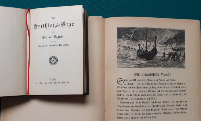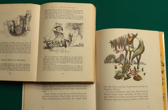 links und oberes aufgeschlagenes Buch