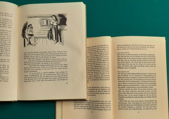 rechts und unteres aufgeschlagenes Buch