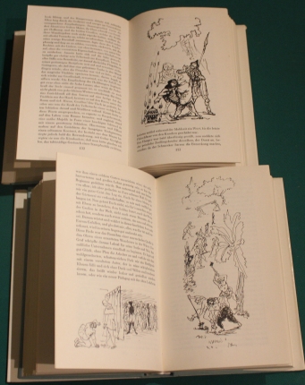Kösel Verlag, München, Sonderausgabe von 1972, 416 und 508 Seiten, mit jeweils 215 und 157 Zeichnungen von Josef Hegenbarth; jeweils Voll-Leinen Ausgaben mit Schutzumschlag; Papier-Schutzumschläge etwas beschädigt; Bücher in sehr gutem altersgemäßen Zustand, Zum Inhalt: Komplettpreis beider Bände: 16 EURO Hier zur Illustratoren-Galerie mit typischen Arbeiten von Josef Hegenbarth |