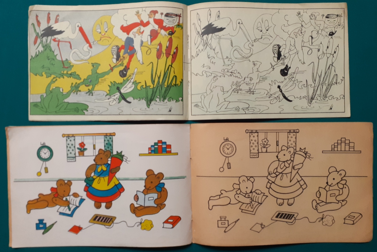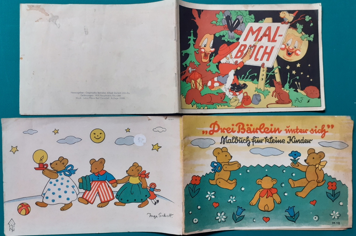 z.T. von Kinderhand ausgemalt, alle anderen unberührt; kräftige Farben -