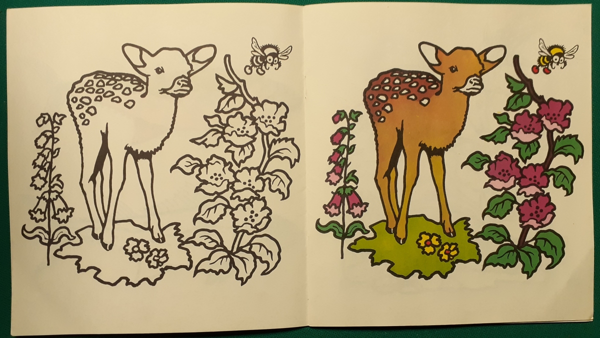 ordentlich von Kinderhand mit Buntstift ausgemalt worden; kräftige Farben; guter altersgemäßer Zustand