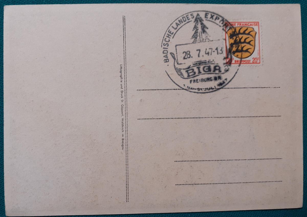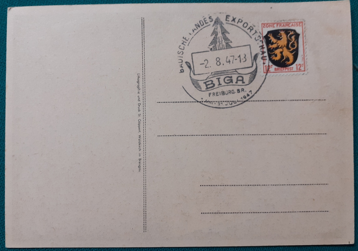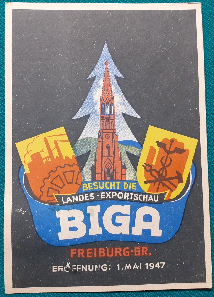"BIGA" Karte mit einer aufgeklebten Marke "Zone Francaise 12 Pf" und Sonderstempel in recht gutem altersgemäßen Zustand Preis: 2 EURO |
