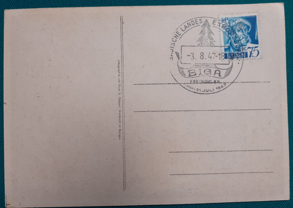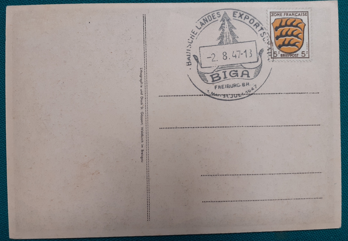 "BIGA" Karte mit einer aufgeklebten Marke "Zone Francaise 5 Pf" und Sonderstempel in recht gutem altersgemäßen Zustand Preis: 2 EURO |