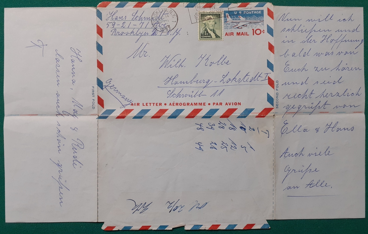 Datiert vom 14.12.1961: Aerogramm "Düsenflugzeug 1" Aerogramm mit aufgedrucktem "Düsenflugzeug 10 C" und zusätzlich George Washington 1 C grün"; gelaufen von Brooklyn (New York City) nach Hamburg; Ausgabe erschienen 1958/1959; schöner Stempel in gutem altersgemäßen Zustand Preis: 2 EURO |