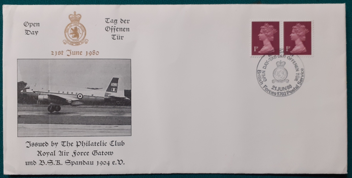 Gedenkbrief zum Tag der Offenen Tür der Umschlag mit schönem Sonderstempel der British Forces in Berlin; frankiert mit 2 Marken; dazu ein Gedenkblatt innenliegend in deutscher und englischer Sprache zum Tag der Offenen Tür; Umschlag links etwas gestaucht; sonst sehr guter altersgemäßer Zustand Preis: 3 EURO |