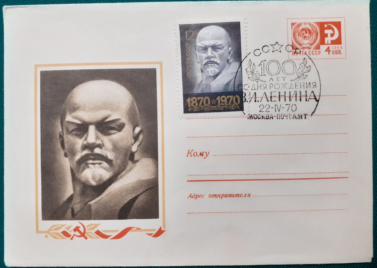 100 Jahre W. I. Lenin Umschlag mit aufgeklebter Marke "Lenin 1870-1970, 12 Kop." und Sonderstempel in gutem altersgemäßen Zustand Preis: 3 EURO |