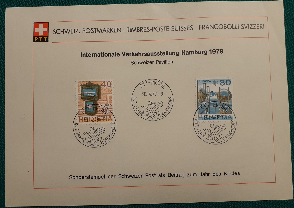 Internationales Jahr des Kindes Blatt im Format 21 x 15 cm mit zwei Europa-Marken der Schweiz und dem Sonderstempel: Internationales Jahr des Kindes; Blatt in gutem altersgemäßen Zustand Preis: 2 EURO |