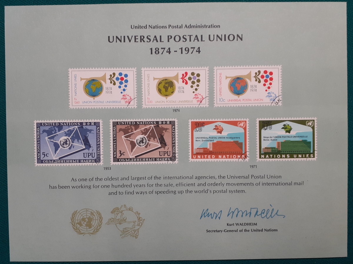 Gedenkkarte Gedenkkarte aus Pappe, unterzeichnet vom Generalsekretär Kurt Waldheim; aufgedruckte Marken von 1971, 1953 und 1974; Format ca. 20 x 15 cm; sehr guter Zustand Preis: 2 EURO |