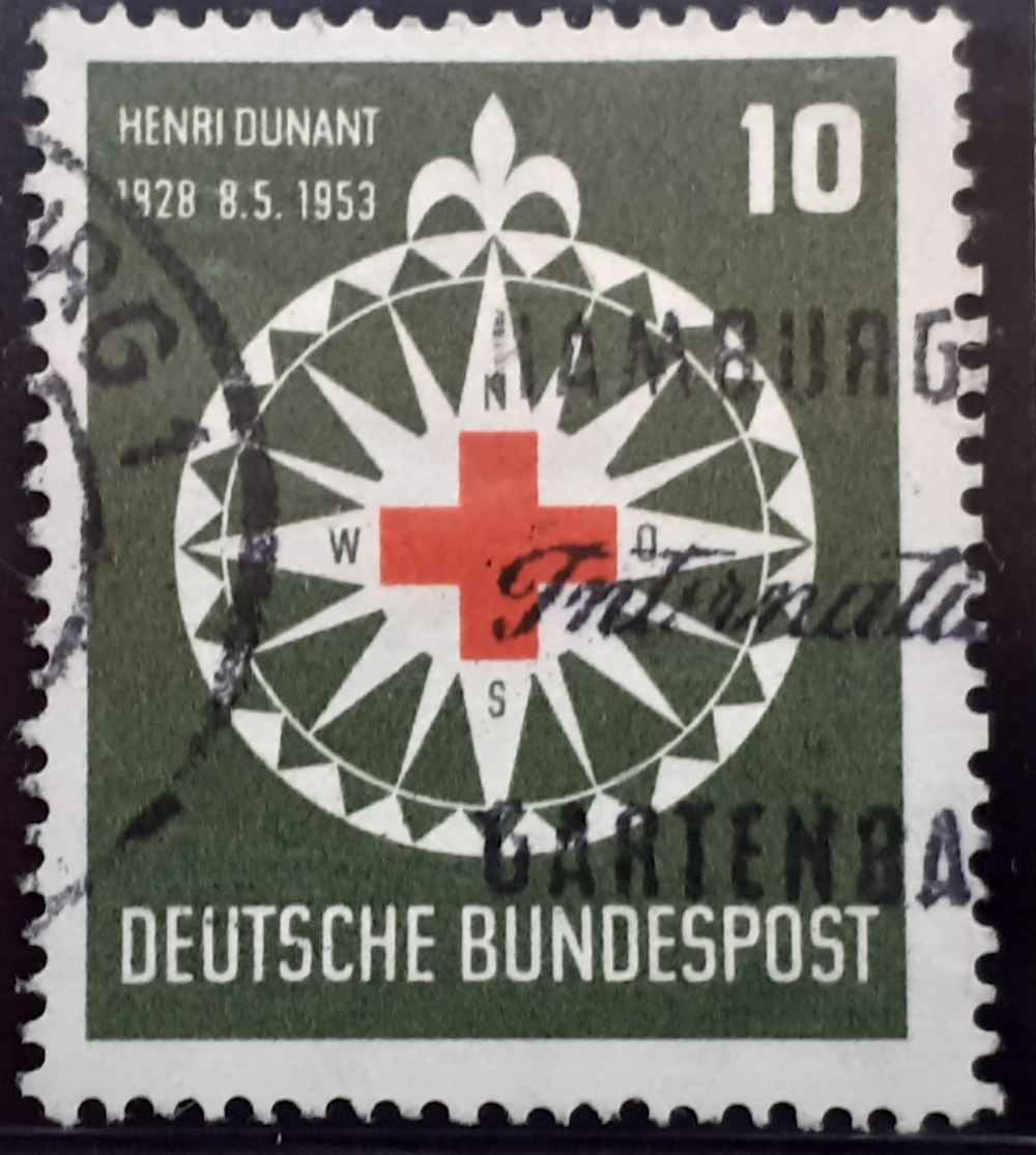 Henri Dunant Ausgabetag: 8.5.1953 Michel-Nr. 164 gestempelt, siehe Abbildung; guter altersgemäßer Zustand Preis: 4 EURO |