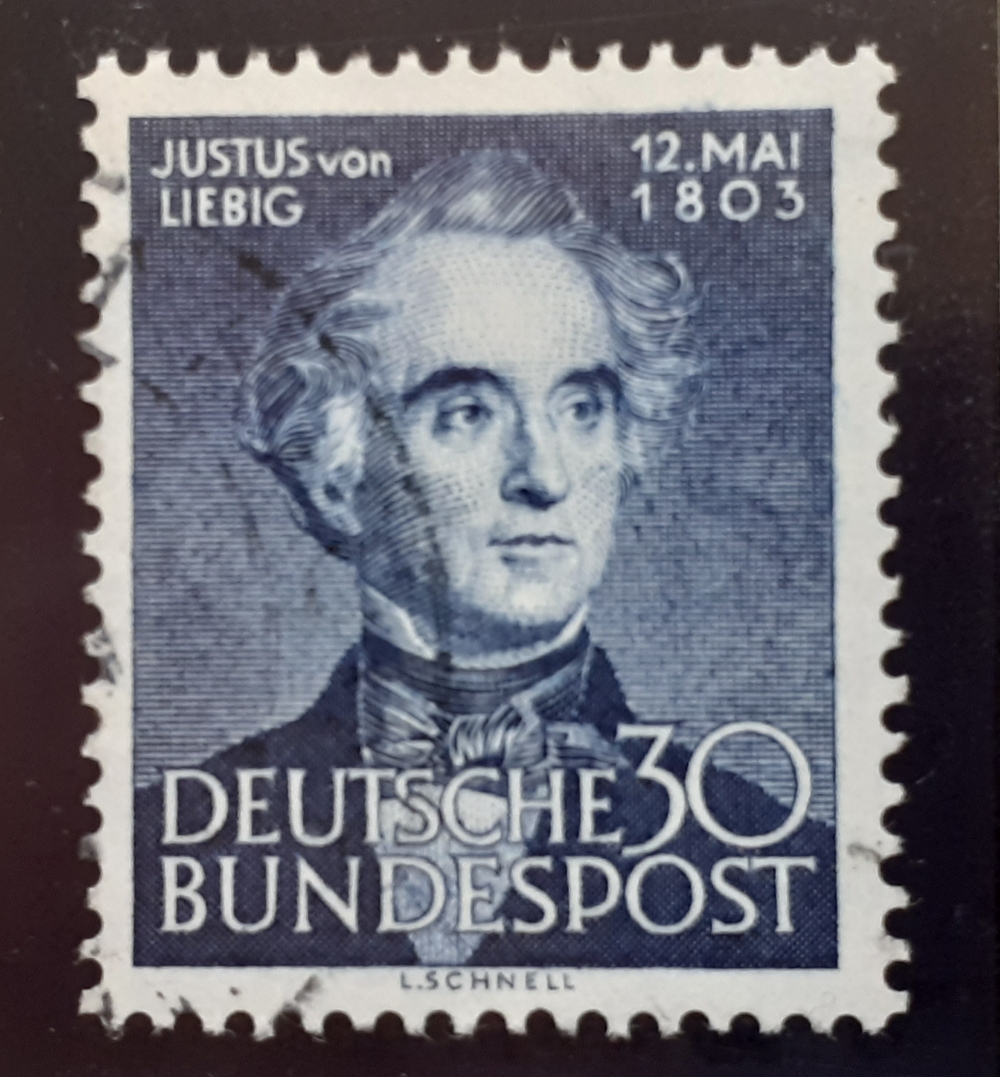 Justus von Liebig Ausgabetag: 12.5.1953 Michel-Nr. 166 gestempelt, siehe Abbildung; guter altersgemäßer Zustand Preis: 12 EURO |