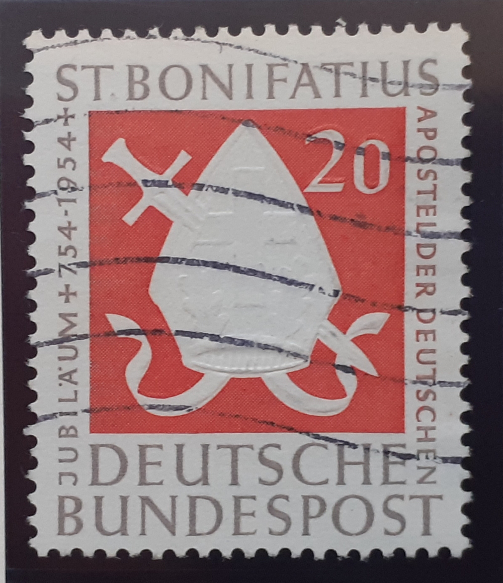 Todestag des hl. Bonifatius Ausgabetag: 5.6.1954 Michel-Nr. 199 gestempelt, siehe Abbildung; guter altersgemäßer Zustand Preis: 4 EURO |