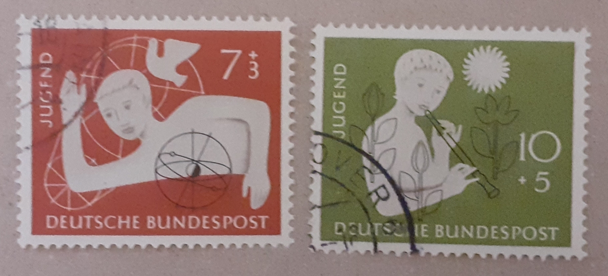 Wohlfahrtsmarken: Ausgabetag: 21.7.1956 Michel-Nr. 232 und 233 gestempelt, siehe Abbildung; guter altersgemäßer Zustand Komplettpreis: 7 EURO |