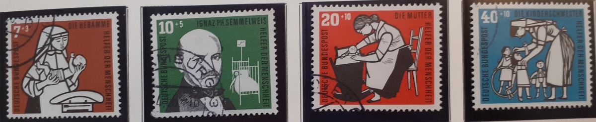 Wohlfahrtsmarken: Ausgabetag: 1.10.1957 Michel-Nr. 270 - 273 gestempelt, siehe Abbildung; guter altersgemäßer Zustand Komplettpreis: 11 EURO |