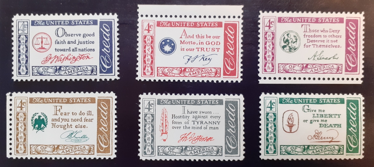 Aussprüche bedeutender Amerikaner Ausgabetag: 20.1.1960 bis 11.1.1961 Michel-Nr. 766 bis 771 jeweils postfrisch gummiert, siehe Abbildung; sehr guter altersgemäßer Zustand Komplettpreis: 7 EURO |