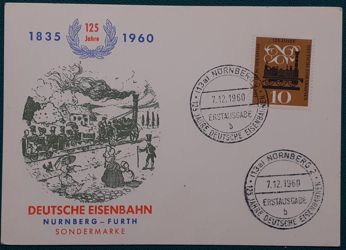 125 Jahre Deutsche Eisenbahn: Michel-Nr. 344 Offizielle Karte mit Ersttagsstempeln; sehr guter altersgemäßer Zustand Preis: 9 EURO |