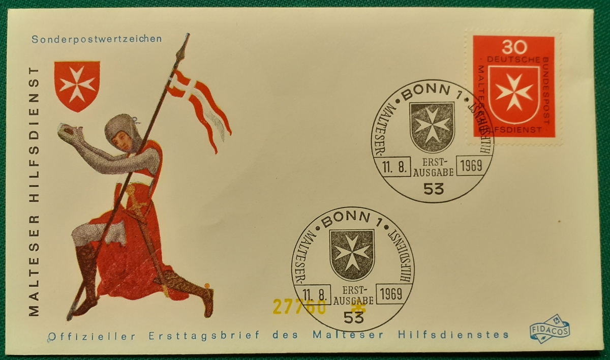 Malteser Hilfsdienst Michel-Nr. 600 Offizieller Umschlag mit Ersttagsstempel; sehr guter altersgemäßer Zustand Preis: 3 EURO |