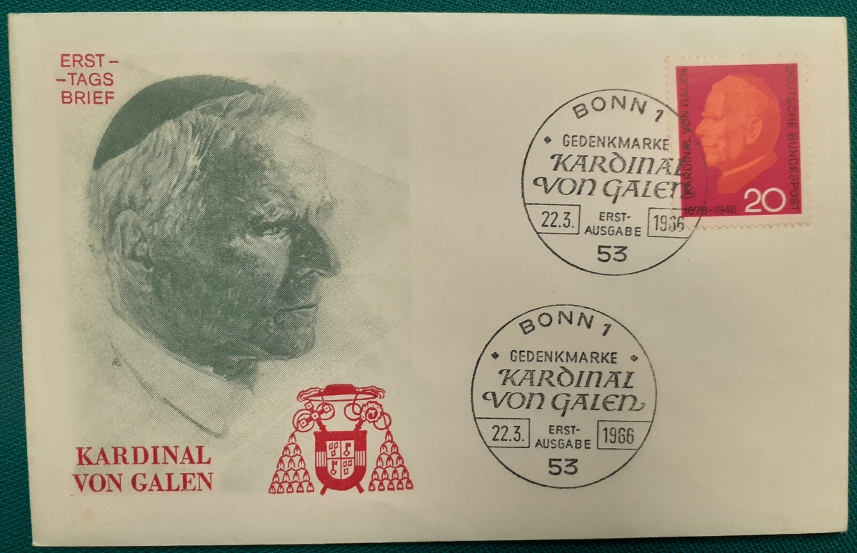 Gedenkmarke Michel-Nr. 505 Offizieller Umschlag mit Ersttagsstempel; sehr guter altersgemäßer Zustand Preis: 4 EURO |