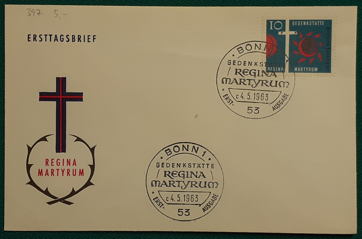 Gedenkstätte Regina Martyrum Michel-Nr. 397 Offizieller Umschlag mit Ersttagsstempel; sehr guter altersgemäßer Zustand Preis: 4 EURO |