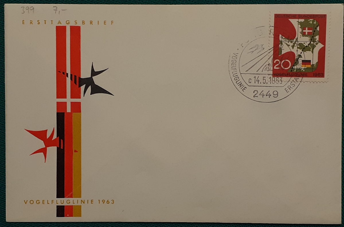 Einweihung der Vogelfluglinie Michel-Nr. 399 Offizieller Umschlag mit Ersttagsstempel; sehr guter altersgemäßer Zustand Preis: 6 EURO |