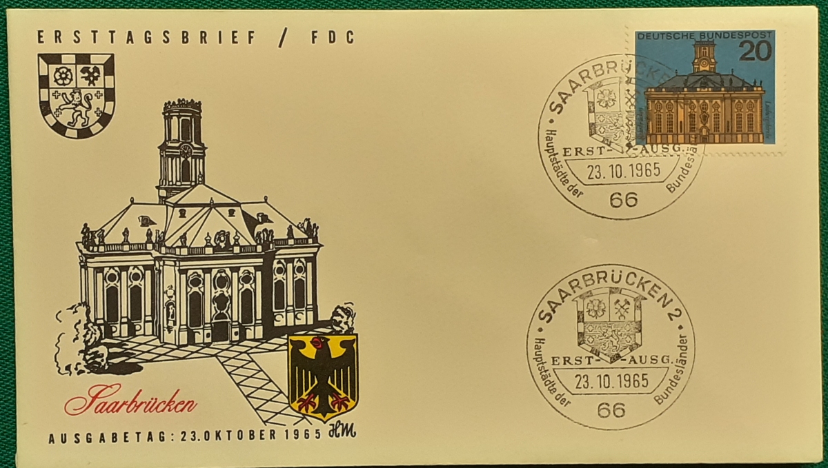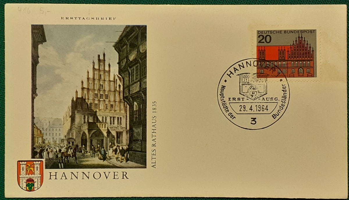Landeshauptstädte der Bundesländer: Michel-Nr. 416 Offizieller Umschlag mit Ersttagsstempel; sehr guter altersgemäßer Zustand Preis: 3 EURO |