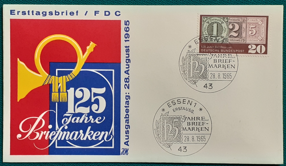 125 Jahre Briefmarken Michel-Nr. 482 Offizieller Umschlag mit Ersttagsstempel; sehr guter altersgemäßer Zustand Preis: 3 EURO |