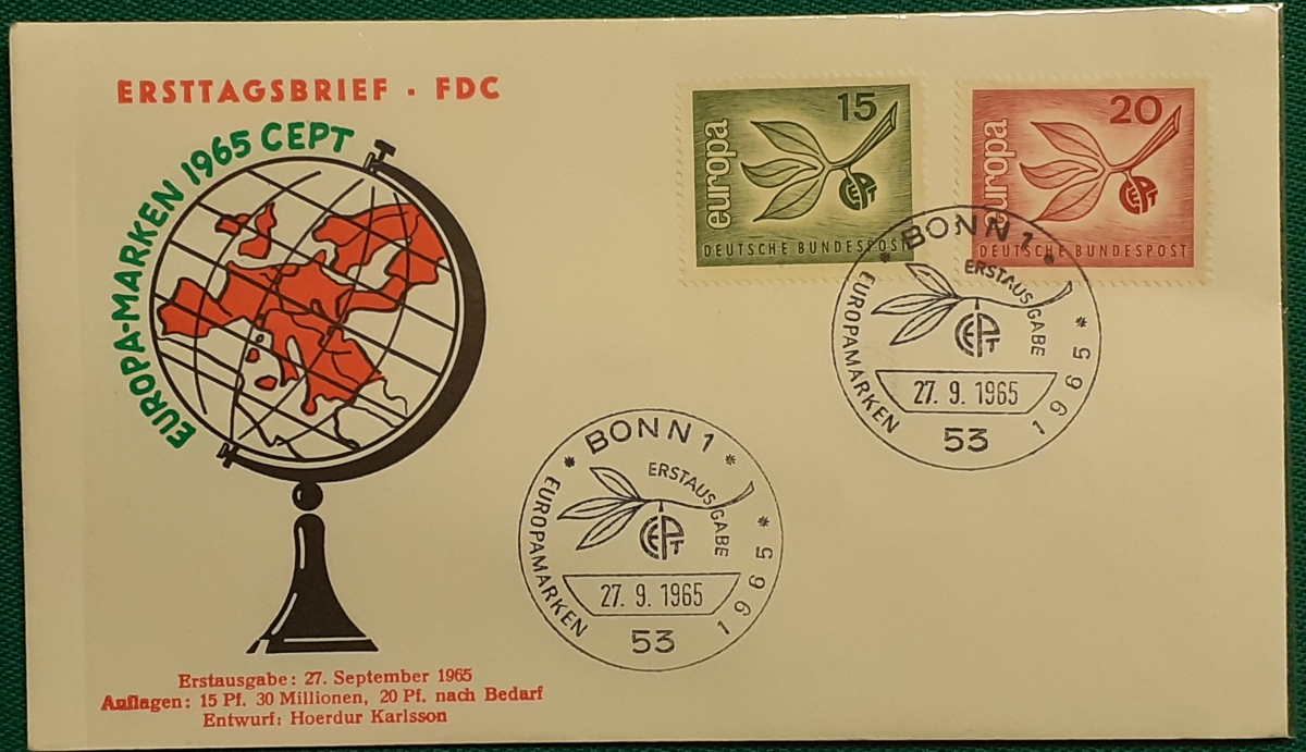 Europamarken 1965 Michel-Nr. 519 und 520 Offizieller Umschlag mit Ersttagsstempel; sehr guter altersgemäßer Zustand Preis: 3 EURO |