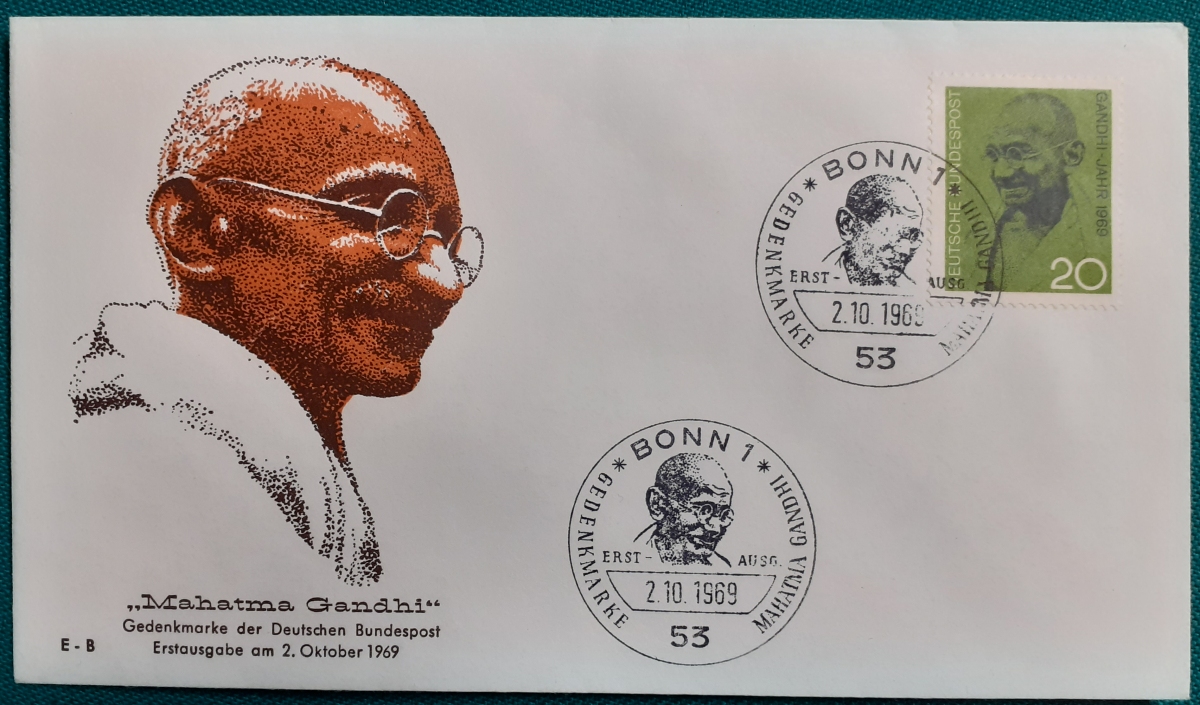 Mahatma Gandhi Michel-Nr. 608 Offizieller Umschlag mit Ersttagsstempel; sehr guter altersgemäßer Zustand Preis: 3 EURO |