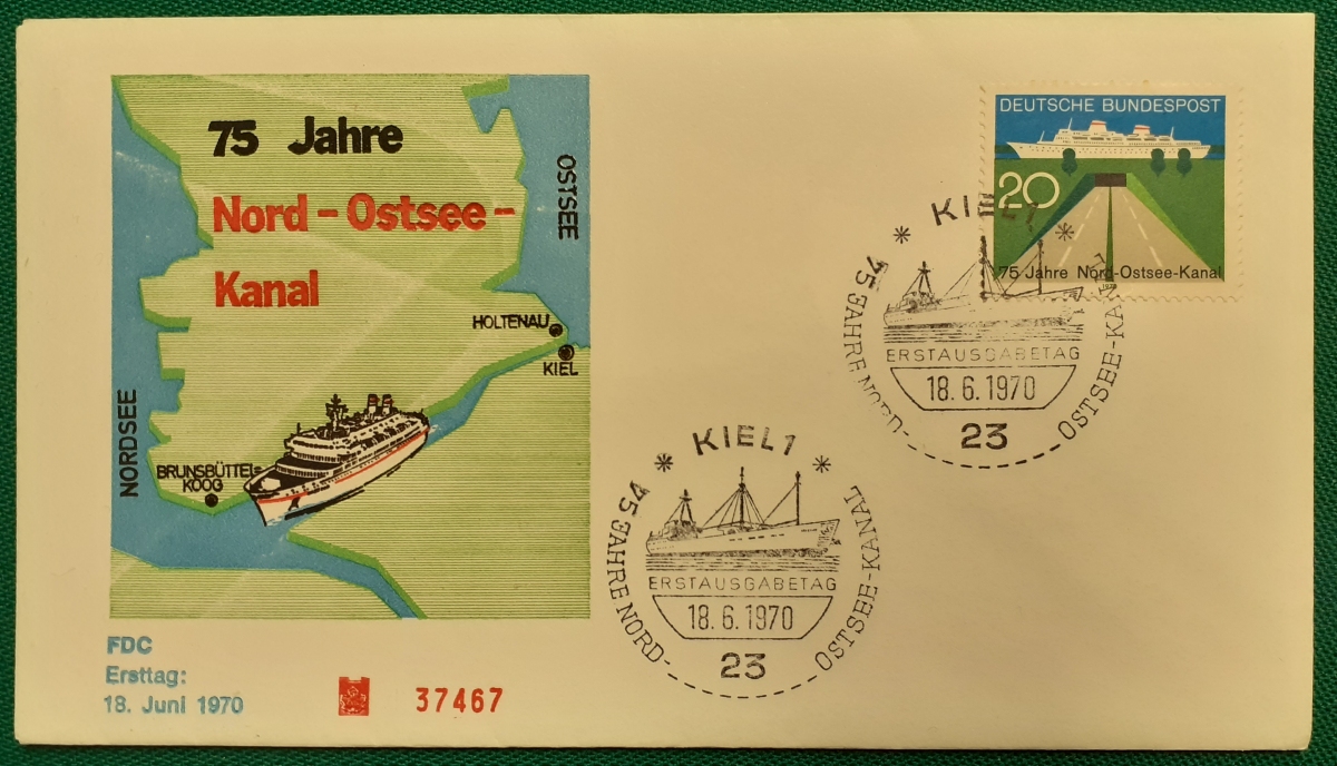 75 Jahre Nord-Ostsee-Kanal Michel-Nr. 62 Offizieller Umschlag mit Ersttagsstempel; sehr guter altersgemäßer Zustand Preis: 3 EURO |
