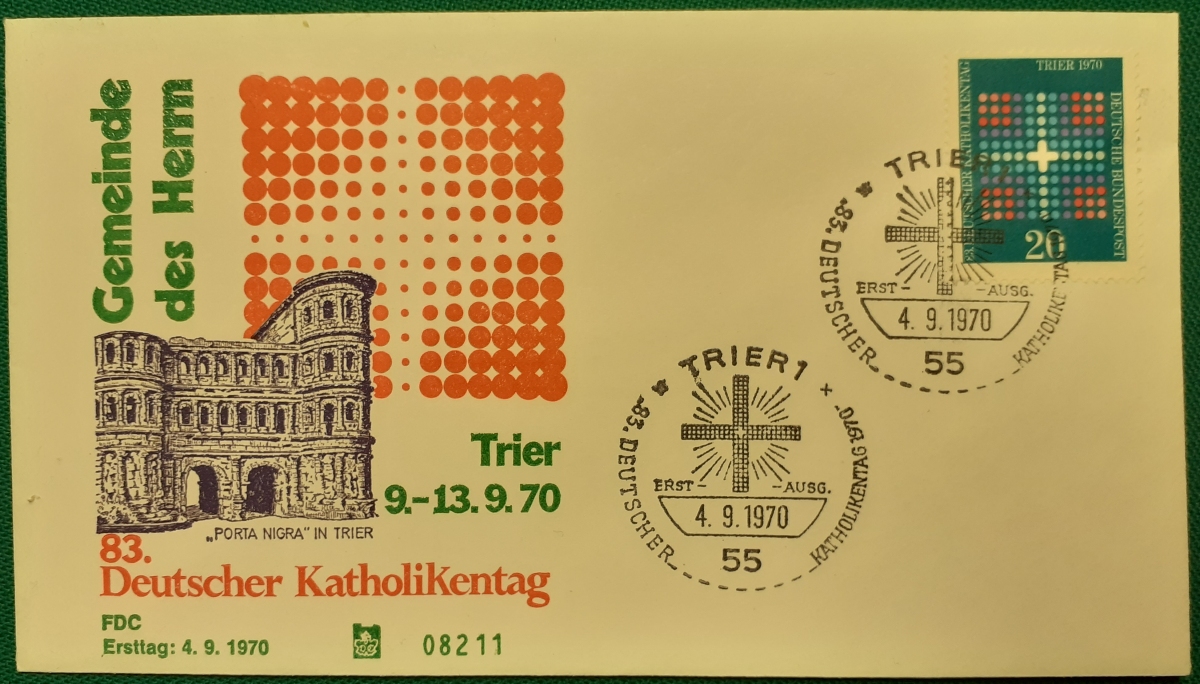 83. Deutscher Katholikentag in Trier Michel-Nr. 648 Offizieller Umschlag mit Ersttagsstempel; sehr guter altersgemäßer Zustand Preis: 3 EURO |