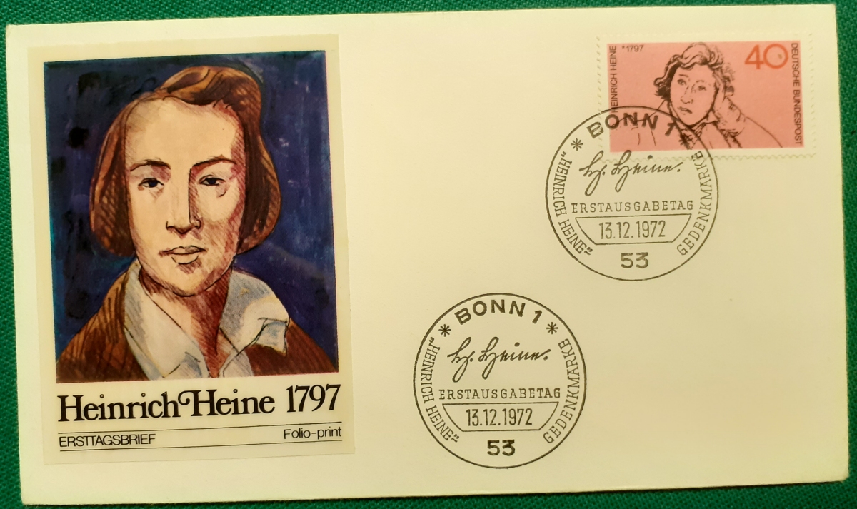 Heinrich Heine Michel-Nr. 750 Offizieller Umschlag mit Ersttagsstempel; sehr guter altersgemäßer Zustand Preis: 2 EURO |
