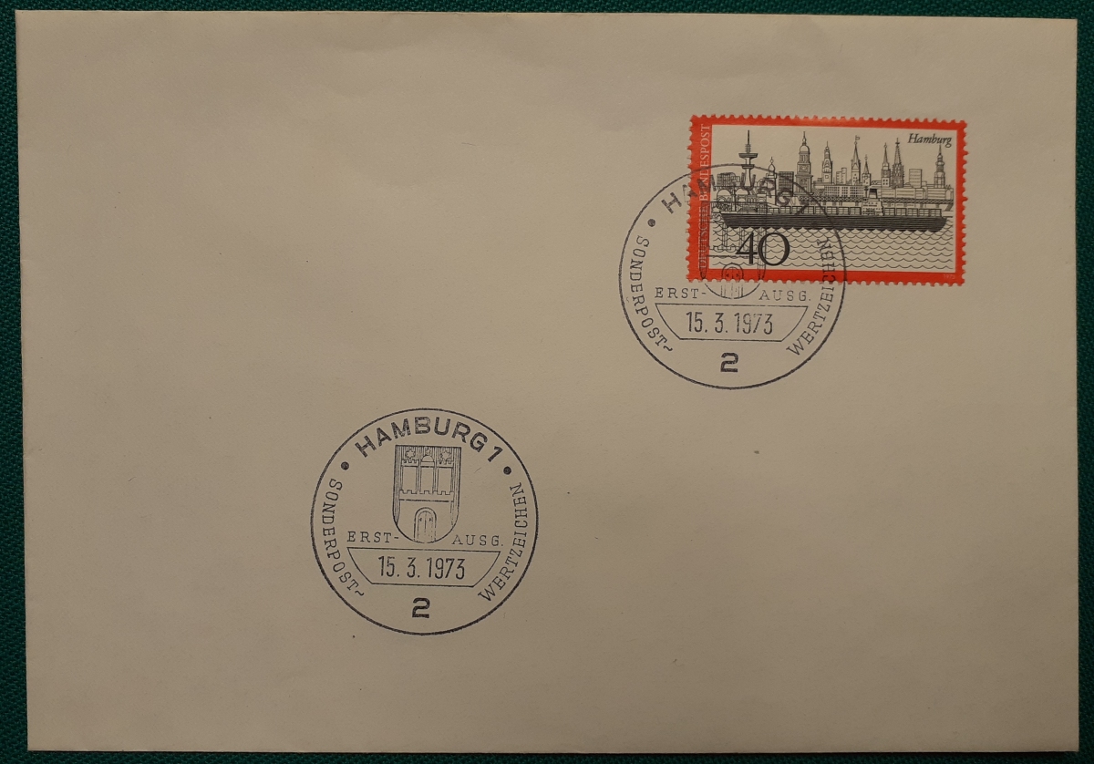 Hamburg Michel-Nr. 761 Umschlag mit Ersttagsstempel; sehr guter altersgemäßer Zustand Preis: 1 EURO |