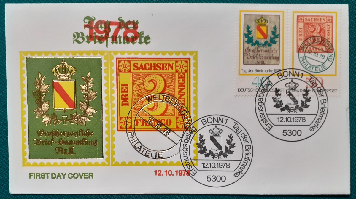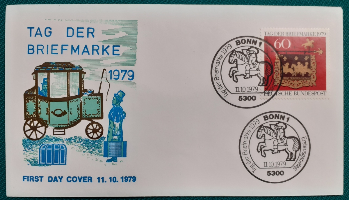 Tag der Briefmarke 1979 Michel-Nr. 1023 Offizieller Umschlag mit Ersttagsstempel; sehr guter altersgemäßer Zustand Preis: 3 EURO |