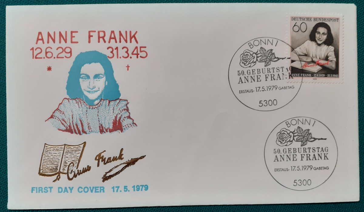 50. Geburtstag Anne Frank Michel-Nr. 1013 Offizieller Umschlag mit Ersttagsstempel; sehr guter altersgemäßer Zustand Preis: 3 EURO |