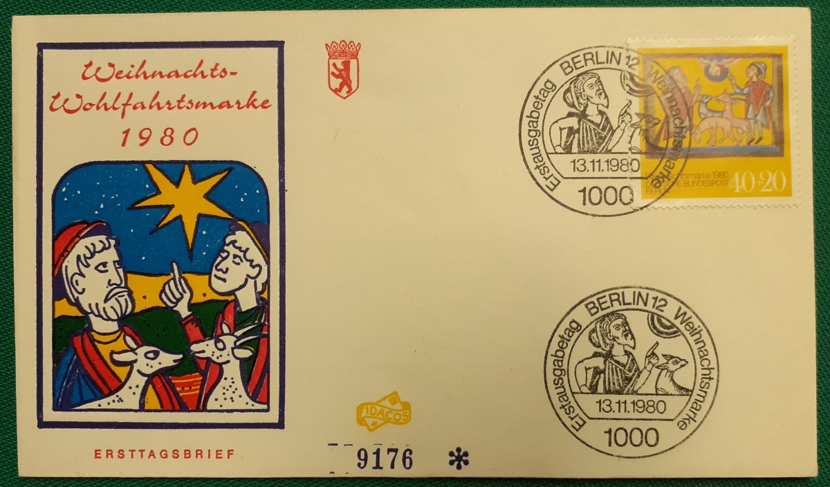 Weihnachten 1980 - Wohlfahrtsmarke Michel-Nr. 1066 Offizieller Umschlag mit Ersttagsstempel; sehr guter altersgemäßer Zustand Preis: 3 EURO |