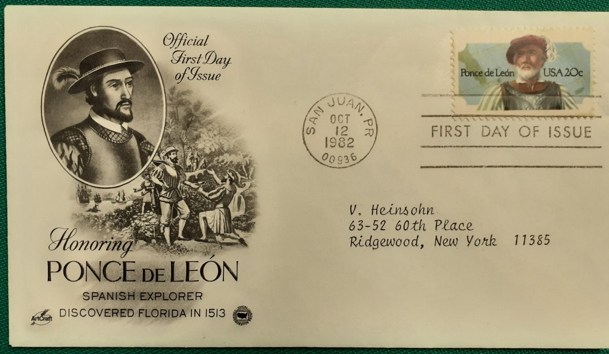 Ponce De León Umschlag im Format 16,5 x 9 cm mit Ersttagsstempel; sehr guter altersgemäßer Zustand Preis: 3 EURO |