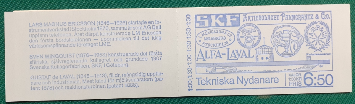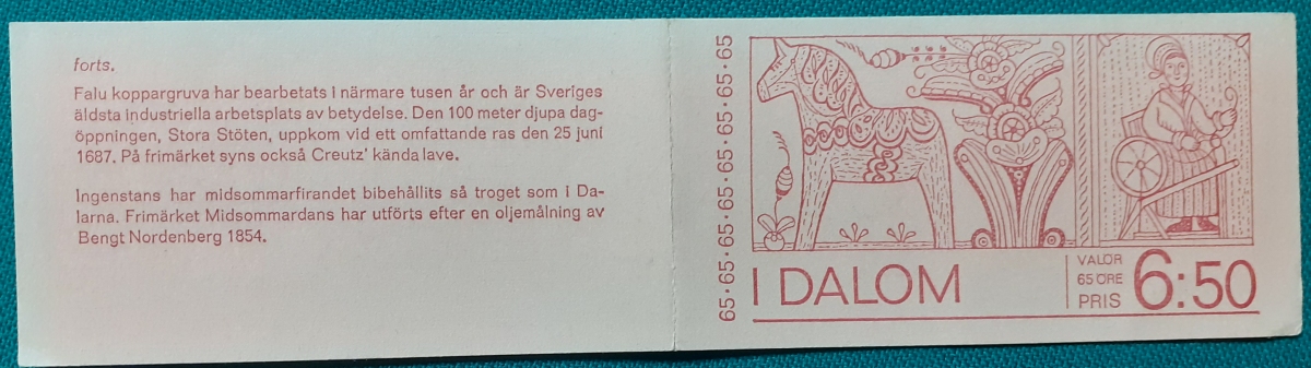Markenheftchen 5 Marken von ursprünglich 10 Marken zu je 65 Öre; postfrisch gummiert; ursprünglich 2 Sätze á 5 verschiedene Marken voreinander platziert; mit Informationen zur Heftchenausgabe auf Schwedisch; guter altersgemäßer Zustand Preis: 2 EURO |